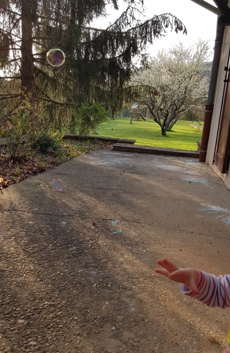 Pour tes 2 ans, je te souhaite encore des milliers de bulles à regarder flotter loin dans toute leur transparence arc-en-ciel ou à voir plonger droit vers le sol dans l’absence de brise, à entendre éclater bruyamment à nos pieds quand ton excitation s’est tue. Ces moments avec toi sont inestimables ❤️
